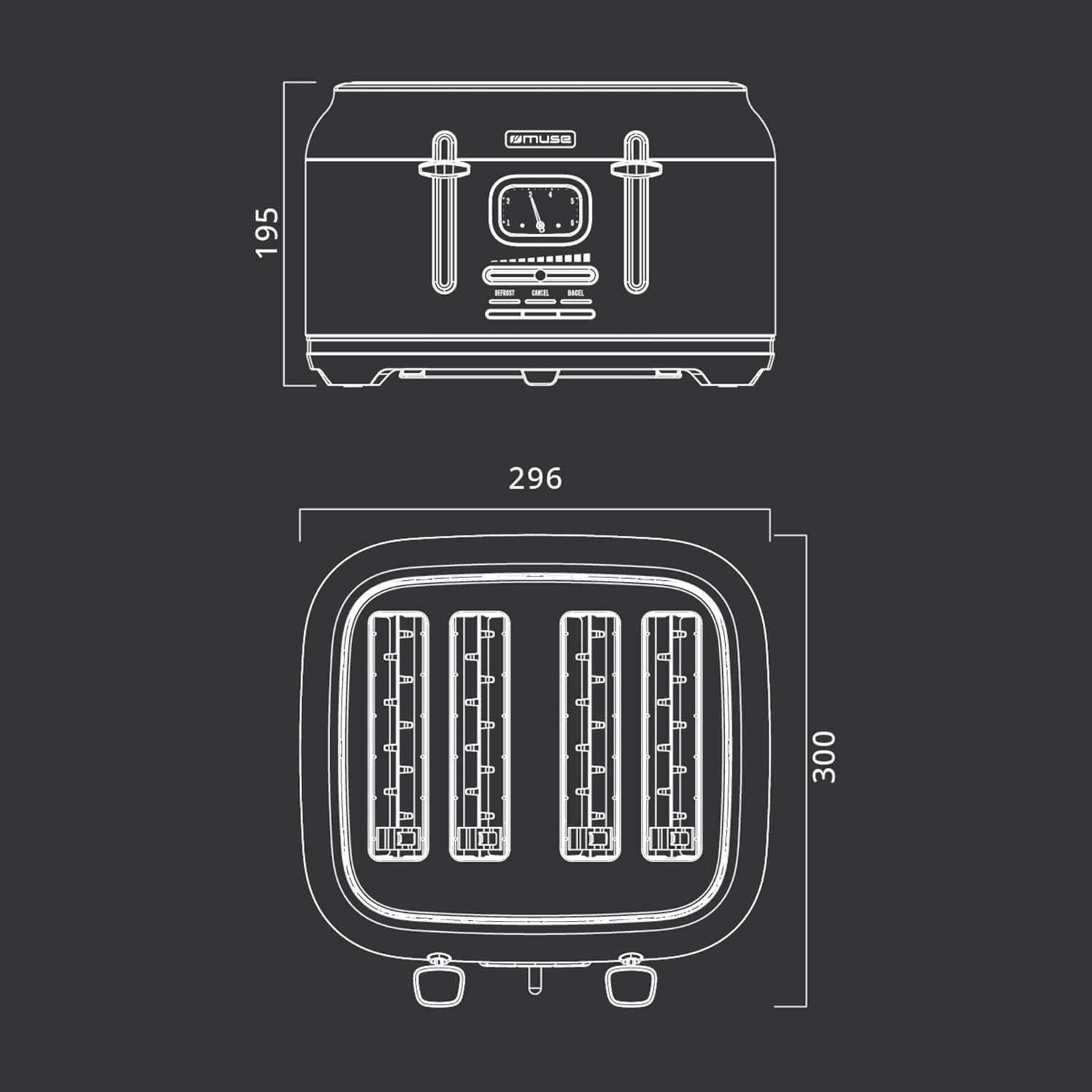 Muse Edelstahl-Toaster im grauen Retro Design, analoge Anzeige, beleuchtete Tasten, 6 Bräunungsstufe