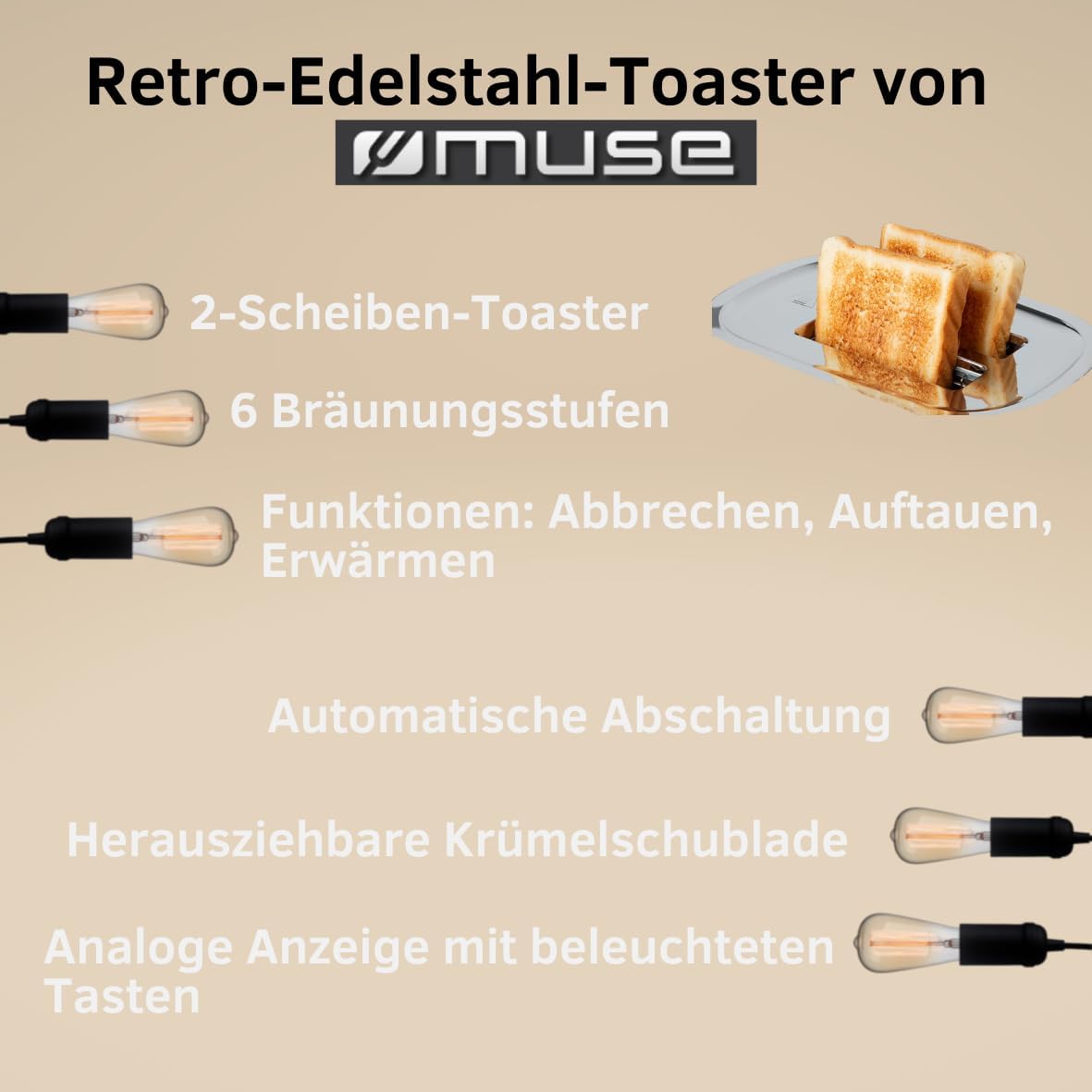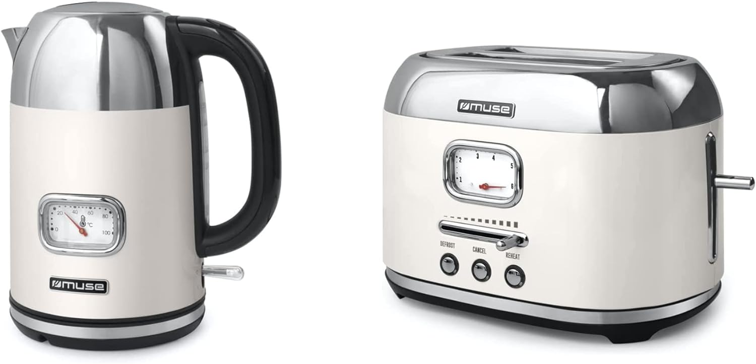 - Lieferumfang: 2Scheiben Toaster (MS-120 SC) und kabelloser Wasserkocher (MS-020 SC) im Vintage Retro-Design, beige / Edelstahl