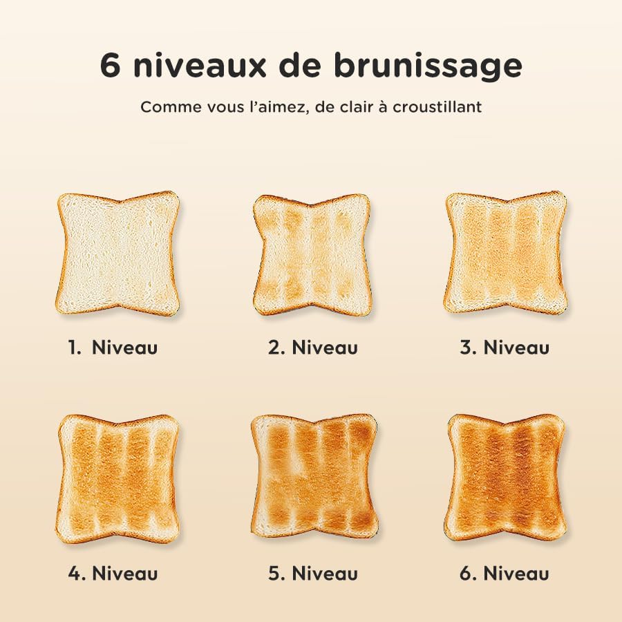 - **VIELSEITIGE RÖSTSTUFEN**:Passen Sie die Röstintensität nach Ihrem Geschmack an! Mit 6 Röststufen erzielen Sie den perfekten, knusprigen Toast, ganz gleich, ob Sie Ihr Brot leicht geröstet oder extra knusprig lieben. Perfekt für alle Arten von