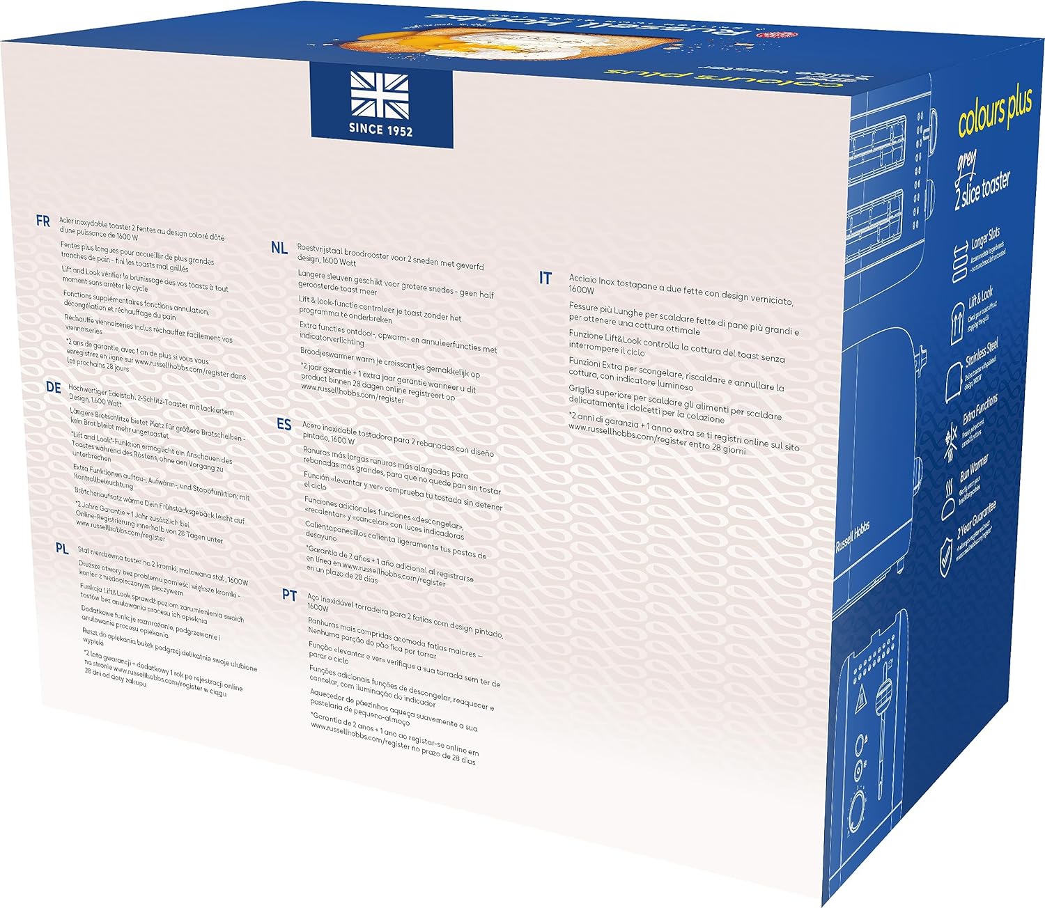 Russell Hobbs Toaster [für 2 Scheiben] Colours Plus Edelstahl Grau (extra breite Toastschlitze, inkl