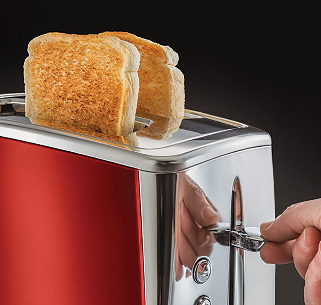 - Schnell-Toast-Technologie – bis zu 50% schnelleres Toasten (im Vergleich zum Russell Hobbs Jewels Ruby Red Toaster 18625-56)
