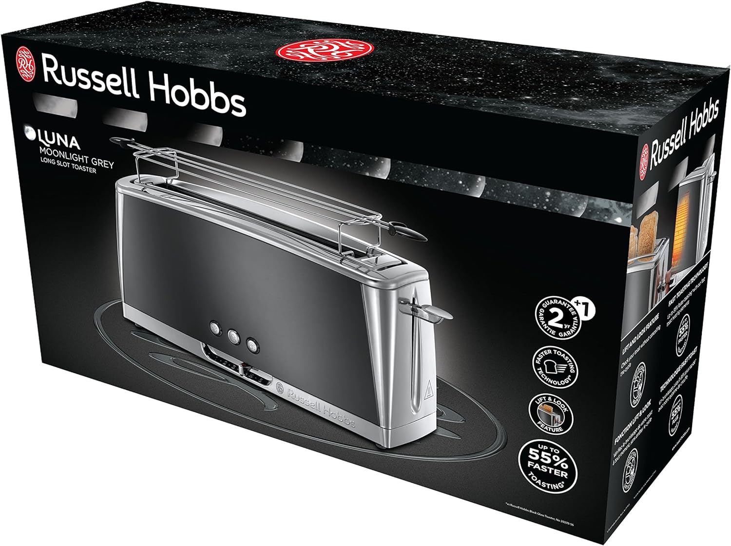 - Lieferumfang: 1x Russell Hobbs Langschlitz Toaster mit Bedienungsanleitung / Automatische Brotzentrierung für gleichmässige Bräunung / Polierter Edelstahl & fingerabdruckresistente Lackierung