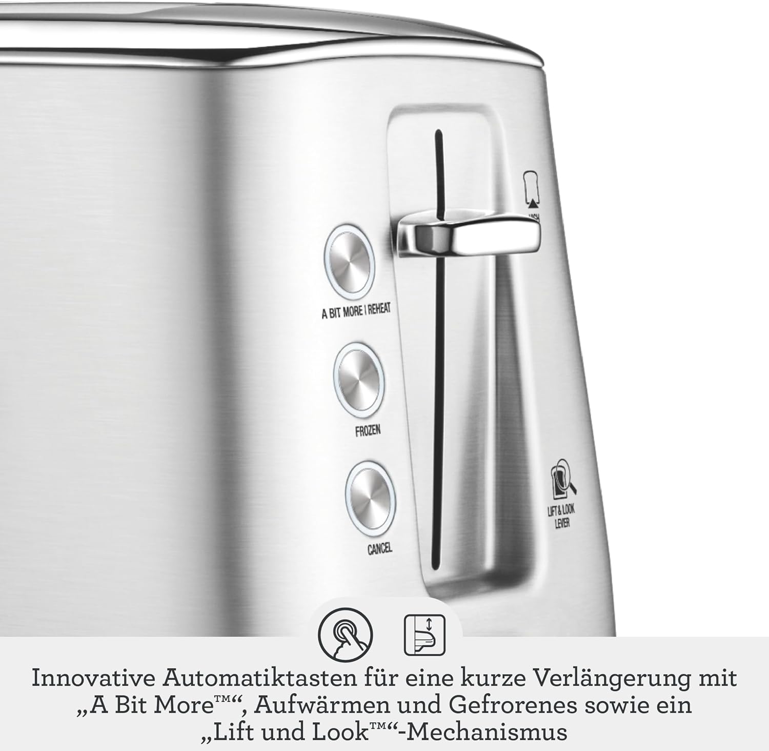 - Innovative automatische Funktionen: Geniessen Sie die bequeme 1-Touch-Funktion "A Bit More" für zusätzliches Toasten und "Lift and Look" zur Überprüfung, ohne den Toastvorgang zu unterbrechen