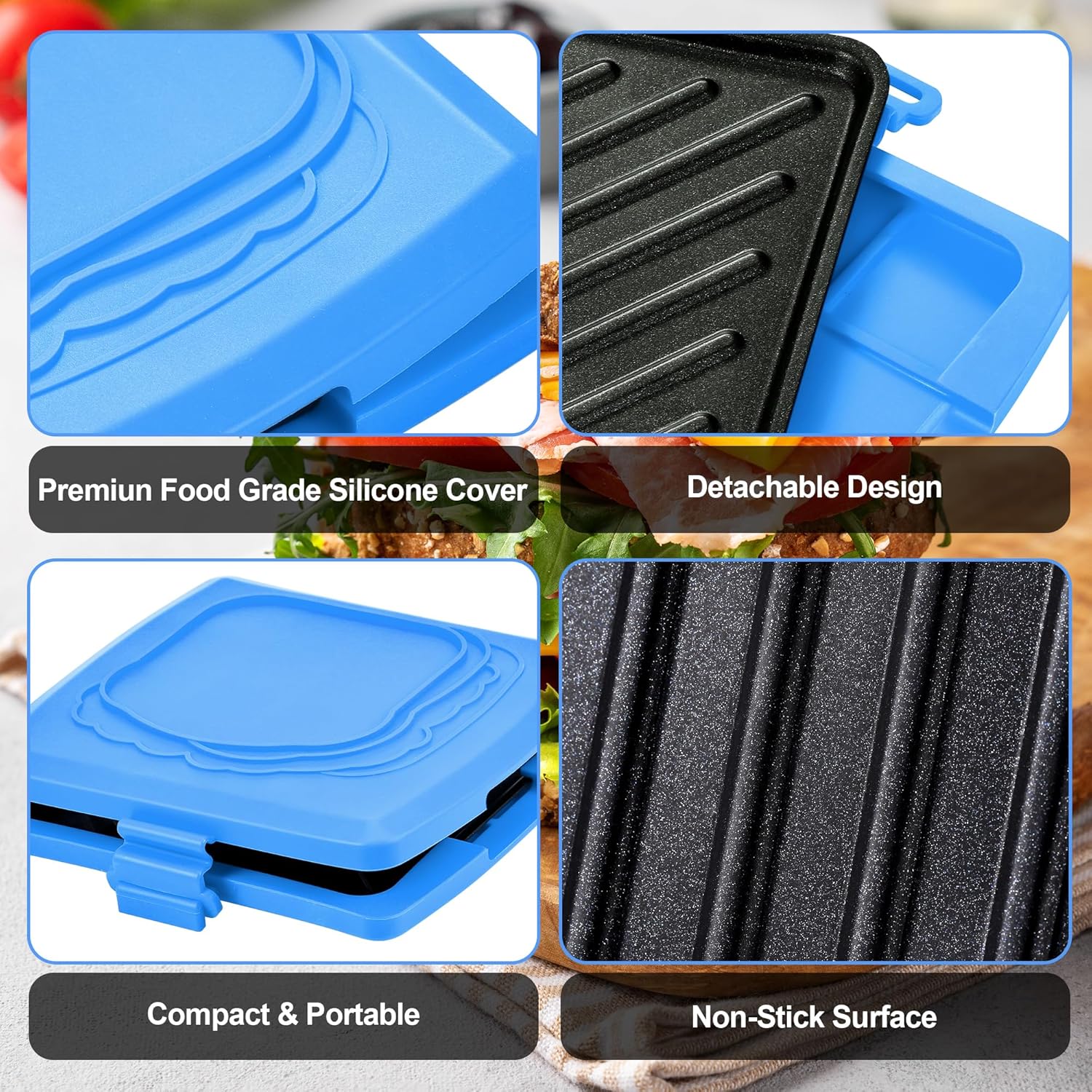 - 【Vielfältige Gerichte einfach zubereiten】 Dieser vielseitige Sandwichtoaster kann mehr als nur Brot toasten. Die grosszügige, quadratische Platte (13,7 x 13,7 cm) ist perfekt, um Paninis zu pressen, Hähnchenflügel zu grillen, Gemüse zu braten