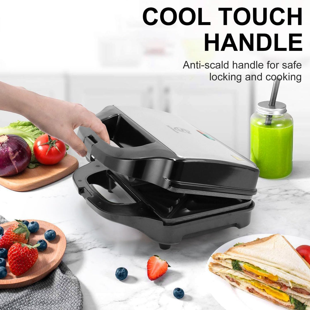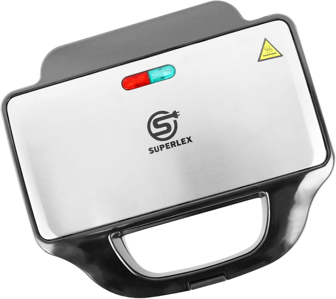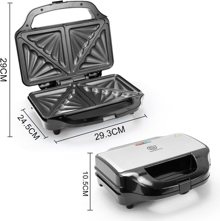 - 【900 W Leistung】 Die Backplatte passt sich nahezu jeder Lebensmitteldicke an. Doppelte Pfanne für gleichmässiges Braten, sodass Sie 4 Sandwiches gleichzeitig grillen können.