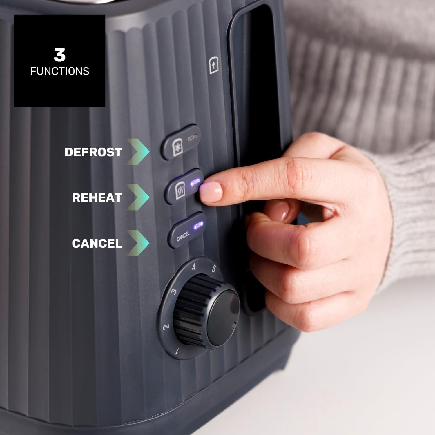 - 【3 VIELSEITIGE FUNKTIONEN】Nutze die praktischen Funktionen Auftauen, Aufwärmen und Stopp für maximale Kontrolle und Flexibilität bei der Zubereitung deiner Toasts.