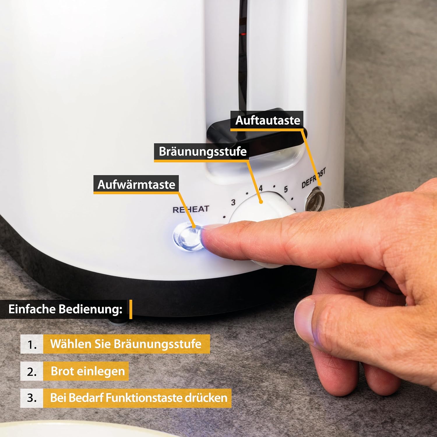 - FUNKTIONALES DESIGN: Knusprige Toasts, geröstetes Schwarzbrot, krosse Bagels und ofenwarme Brötchen - Der Toaster in dezentem Weiss toastet gleichmässig und erfüllt alle Ansprüche an ein modernes Gerät.