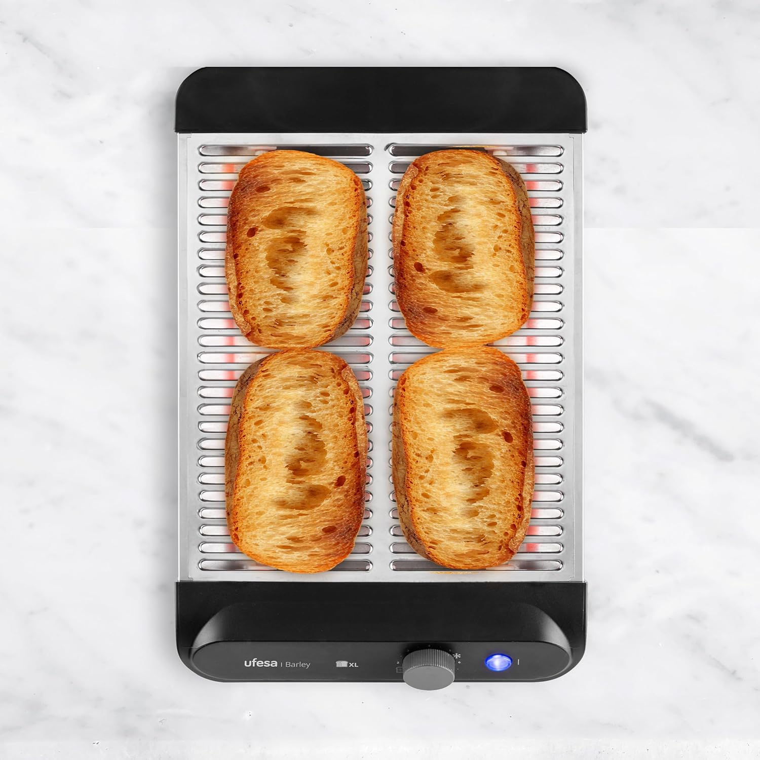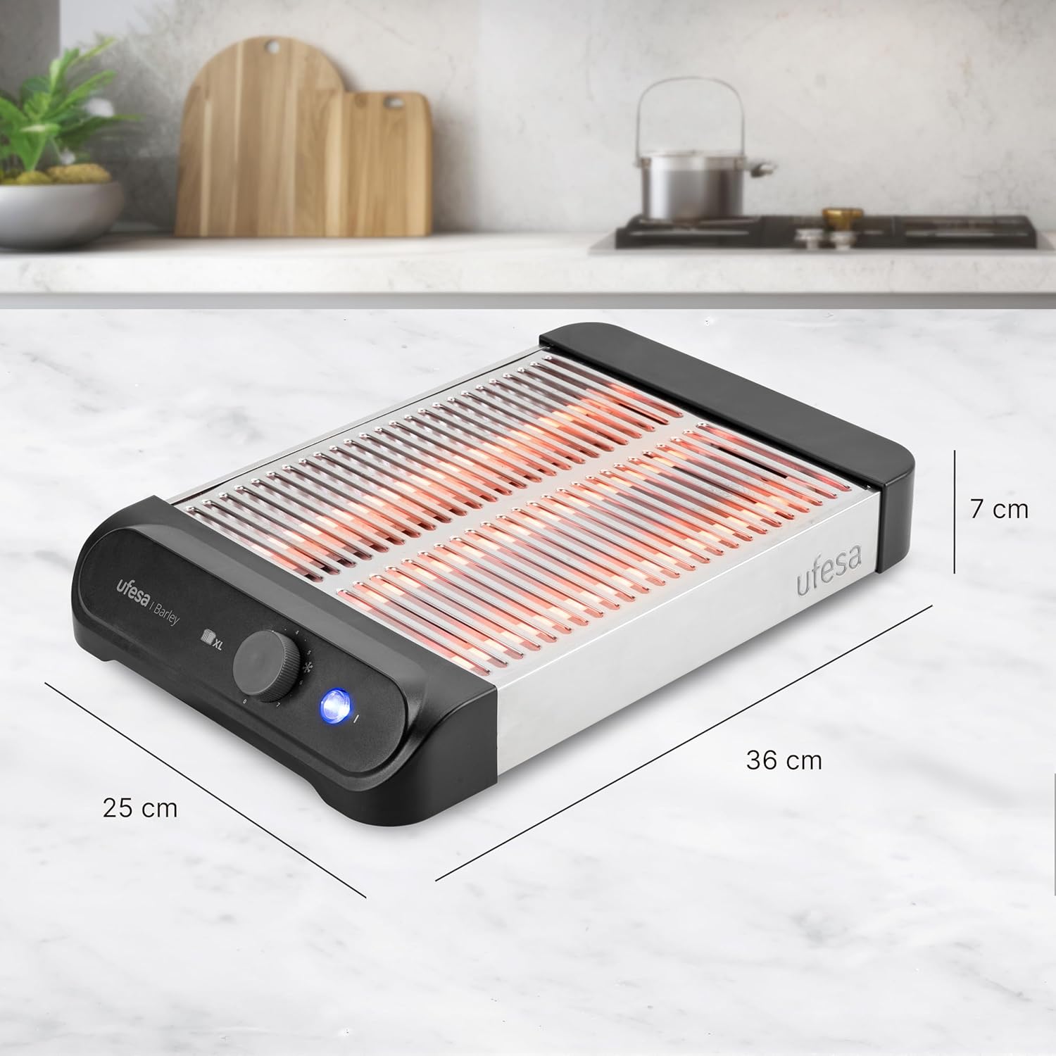 - LEISTUNG VON 900W MIT 3 QUARZHEIZSTÄBEN: Dieser horizontale Toaster bietet schnelles und effizientes Erhitzen dank seiner 900W Leistung und drei Quarzheizelementen, die ein gleichmässiges und homogenes Toasten aller Brotsorten und Gebäck