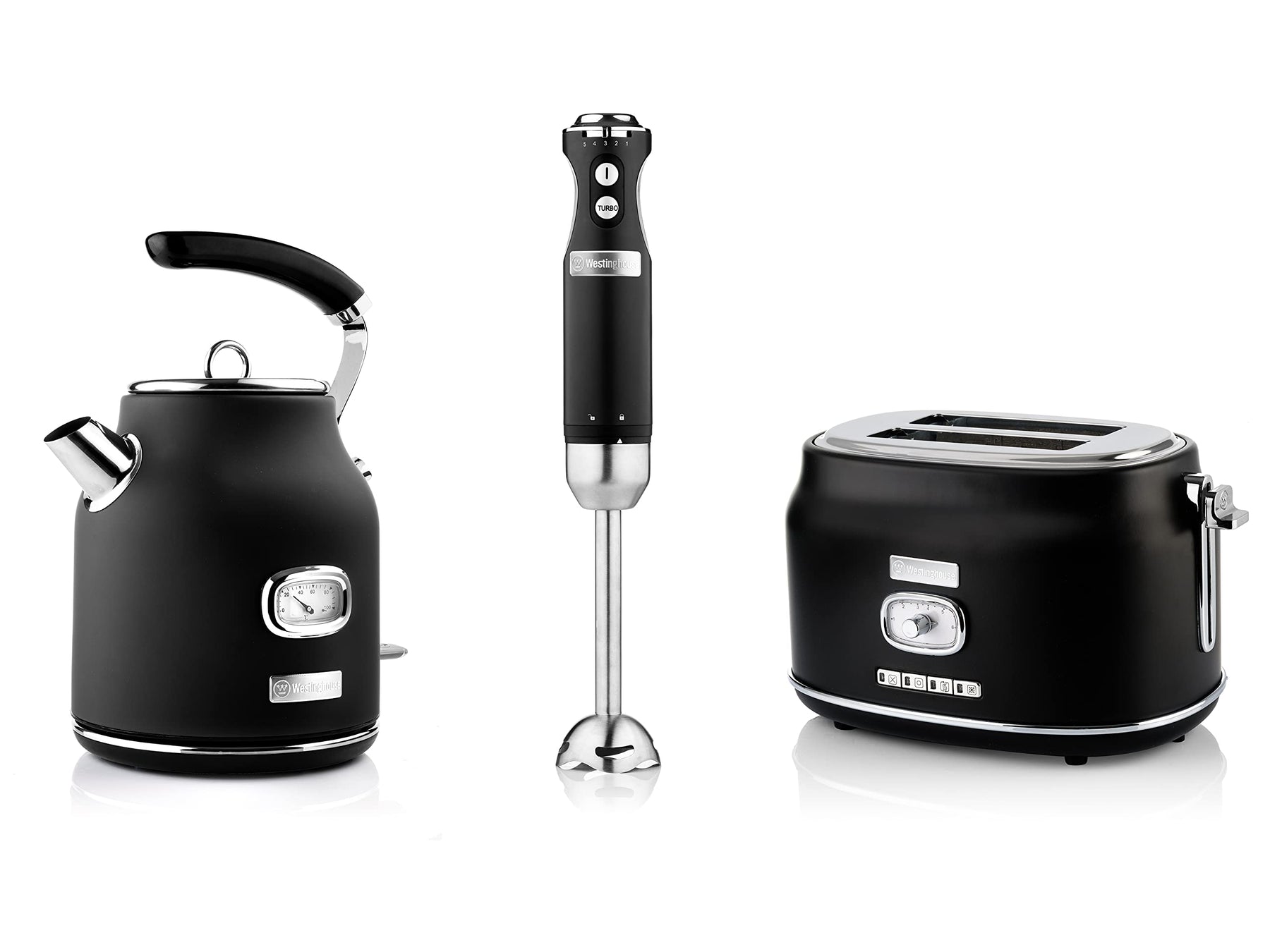 - RETRO LOOK: Schon die Optik des Frühstück-Sets ist ein echter Pluspunkt. Der formschöne Wasserkocher, Toaster und Stabmixer im Retro-Style erfüllen nicht nur ihre Funktion, sondern sind auch echte Hingucker in der Küche.