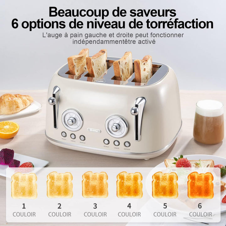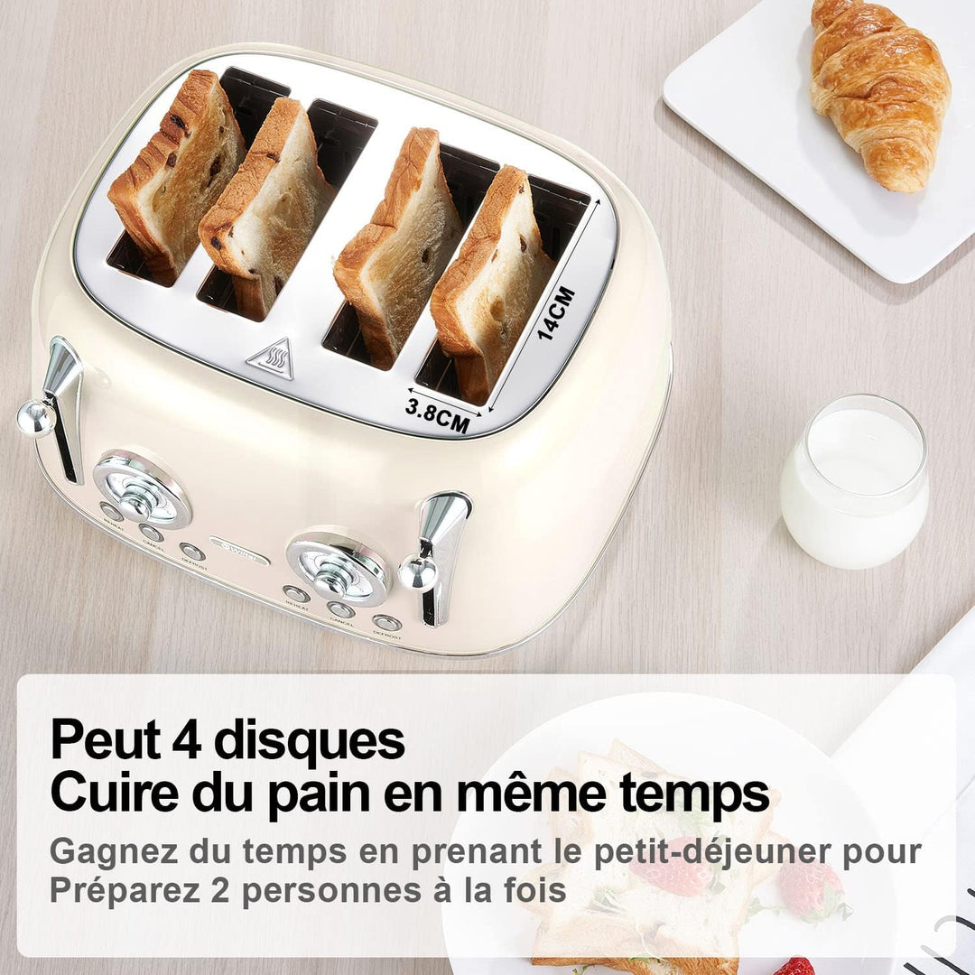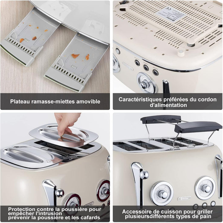 - Toaster 4 Scheiben Retro: ein stilvoller Retro-Look, erhältlich in Grün und Creme, und eine schöne Ergänzung für Ihr Zuhause. Mit abnehmbarem Brotaufsatz, Krümelschublade, Staubschutz, erweitern Sie den Einsatzbereich. Decken Sie die Staubkappe ab, wenn Sie sie nicht verwenden, um das Eindringen von Staub und Kakerlaken zu verhindern.