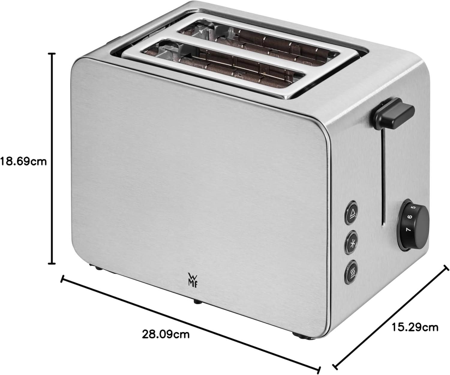 - 7 variabel einstellbare Bräunungsstufen. Überhitzungsschutz bricht Toastvorgang bei zu hoher Temperatur ab. Extra Lift-Funktion für sicheres Entnehmen von kleineren Brotscheiben