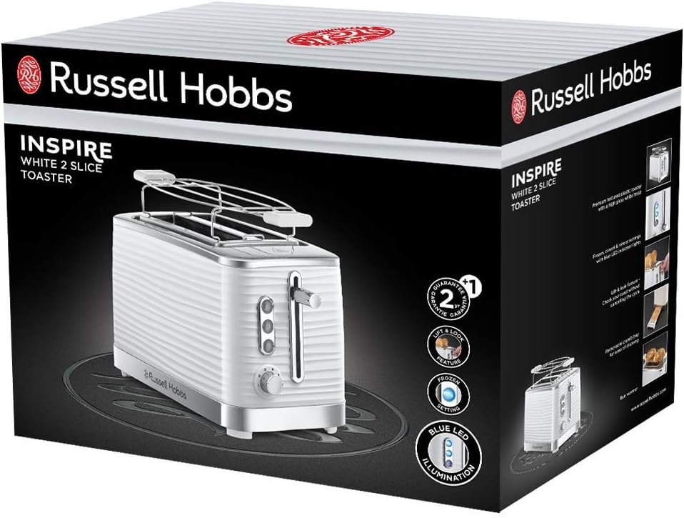 Russell Hobbs Toaster [für 2 Scheiben] Inspire Weiss mit hochwertiger Hochglanz-Struktur (extra brei