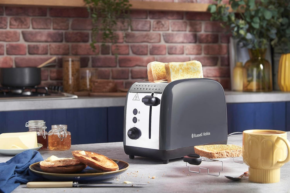 Russell Hobbs Toaster [für 2 Scheiben] Colours Plus Edelstahl Grau (extra breite Toastschlitze, inkl