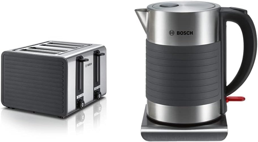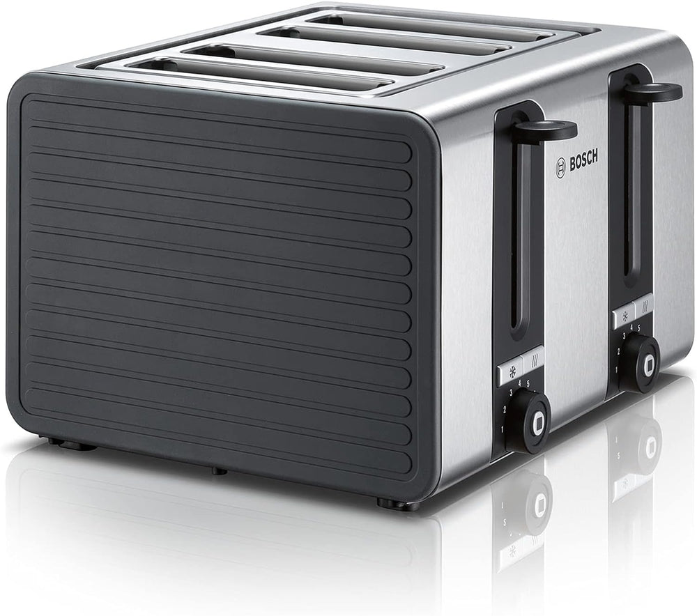 Bosch 4-Schlitz Toaster TAT7S45, mit Abschaltautomatik, 1800 W, Edelstahl / schwarz & kabelloser Was