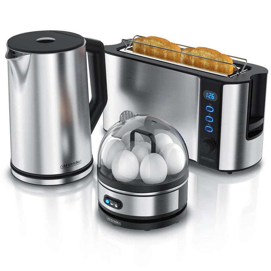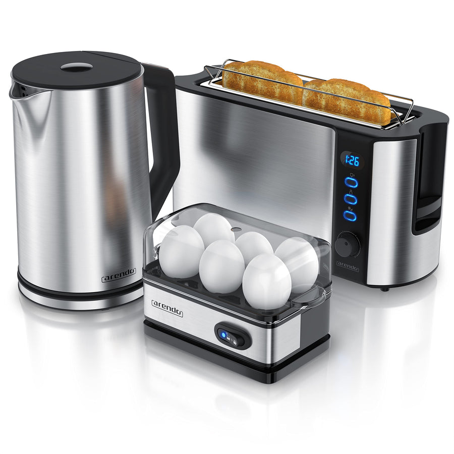 Arendo - Wasserkocher mit Toaster SET und Eierkocher, Edelstahl Silber Wasserkocher 1,5L 40° - 100°C