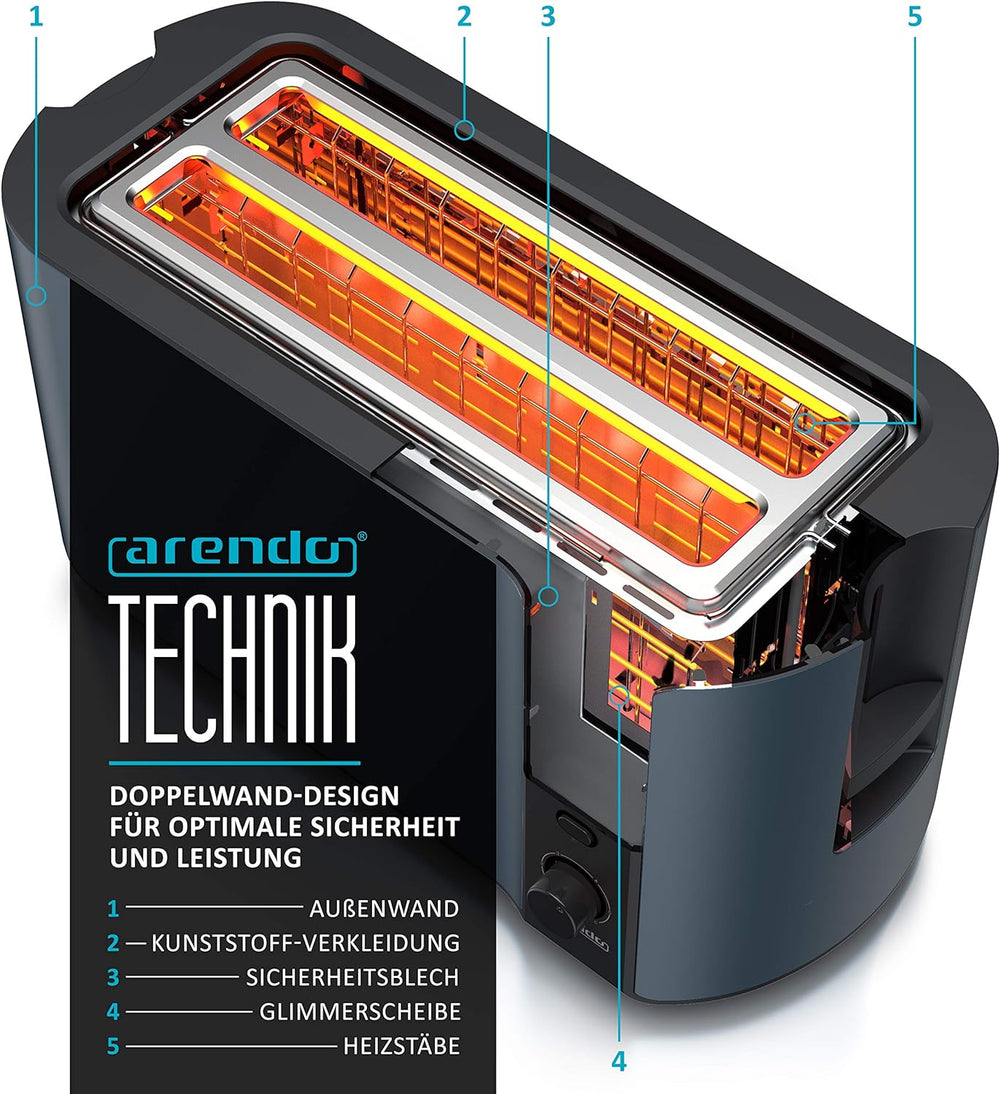 Arendo - Toaster Langschlitz 2 Scheiben - Defrost Funktion - 1000W - Doppelwandgehäuse - Integrierte