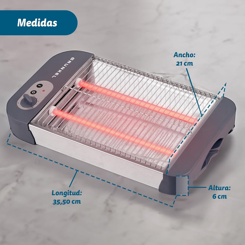 Grunkel - Flat toaster for all types of bread and baked goods with 600 W power, toast timer with 6 l