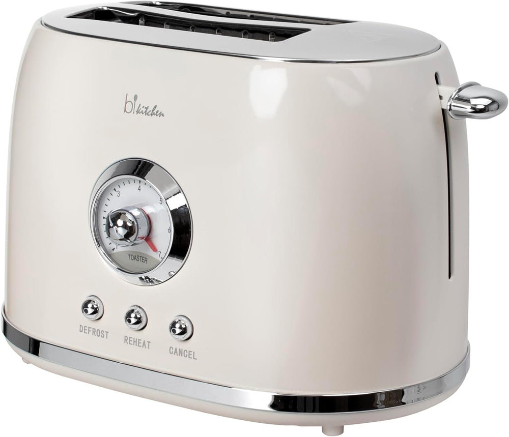 Wiltal Toaster Retro 2 Scheiben, 6 Einstellbare Bräunungstufen, mit hochwertige Brötchenaufsatz, Auf
