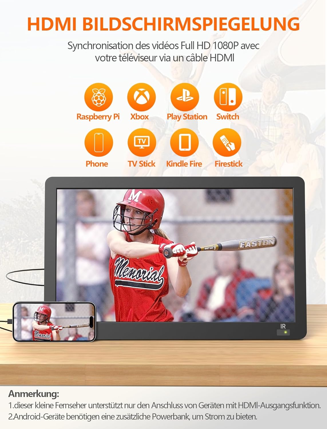 - 【Tragbare Fernseher】Mit einer Auflösung von bis zu 1080P erleben Sie eine klare und flüssige Wiedergabe auf dem 14,2" kleiner Fernseher. TV mit akku für den Einsatz im Wohnmobil/Garten/Camping/Wohnwagen/Küche/Schlafzimmer/Reisen/Sport im Freien.