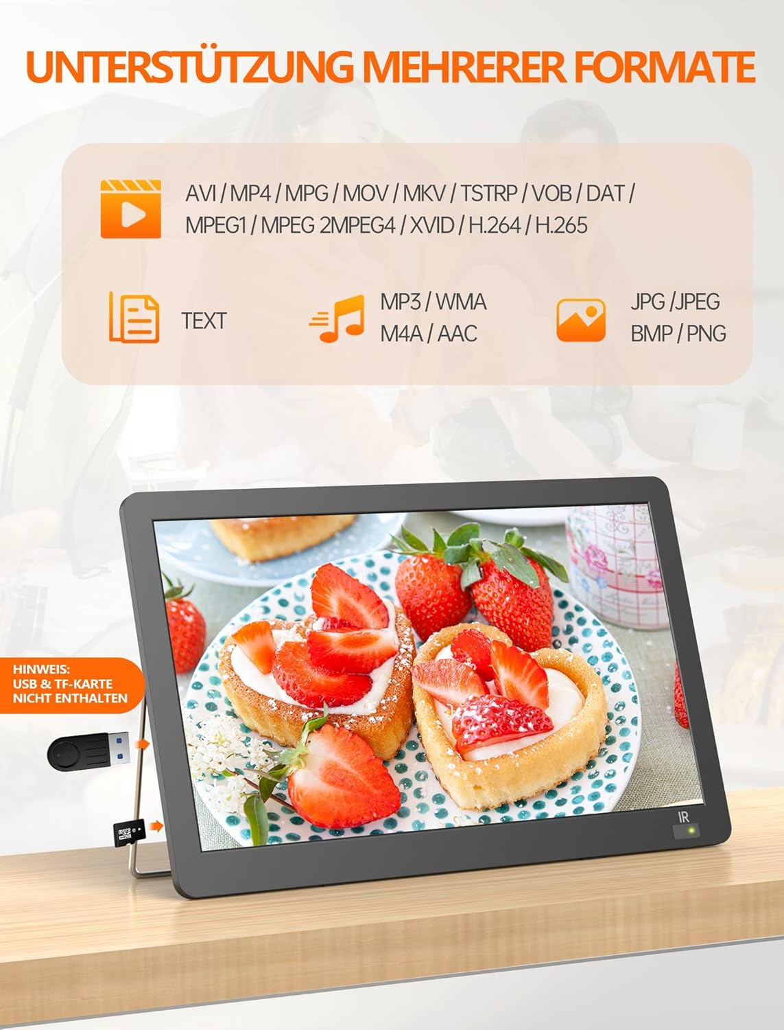 - 【USB-/TF Karten-Eingang】Integrierte USB-/TF Karten-Schnittstelle, kompatibel mit einer Vielzahl von Formaten. Stecken Sie einen USB-Stick/eine TF-Karte (nicht im Lieferumfang enthalten) ein, um Ihre Lieblingsinhalte zu geniessen. Er kann auch als