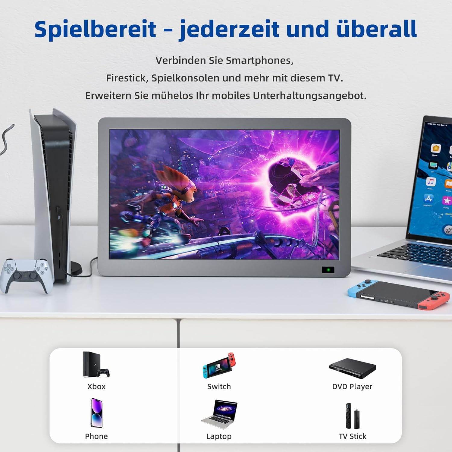 - 【HDMI Input & AV In】DESOBRY Portable TV mit HDMI-Eingabefunktion ermöglicht die Synchronisation von bis zu 1080P Video, Audio und Spielen von Telefonen, Computern, TV-Sticks, Raspberry Pi, Xbox, Spielekonsolen oder kindle fire etc.(Pls. bestätigen
