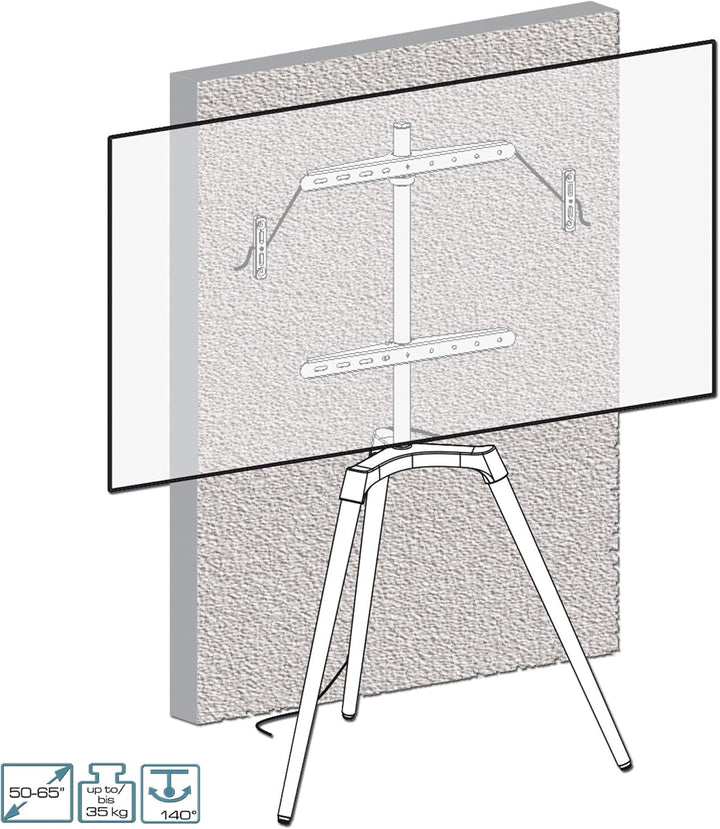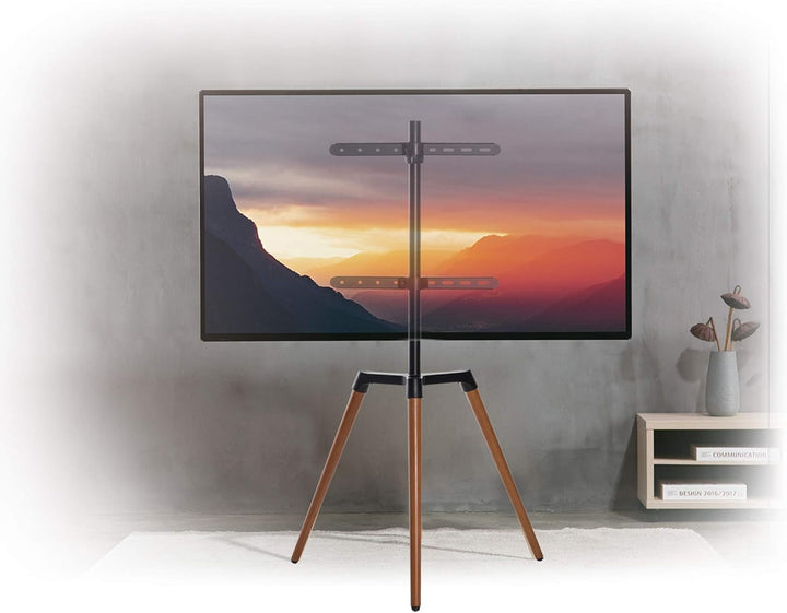 - ✅ LIEFERUMFANG: 1x EasyLife TV Staffelei TRIPOD in Schwarz / Nussbaum dunkel, 2x Wandhalter, 1x Befestigungsmaterial, 1x Montageanleitung