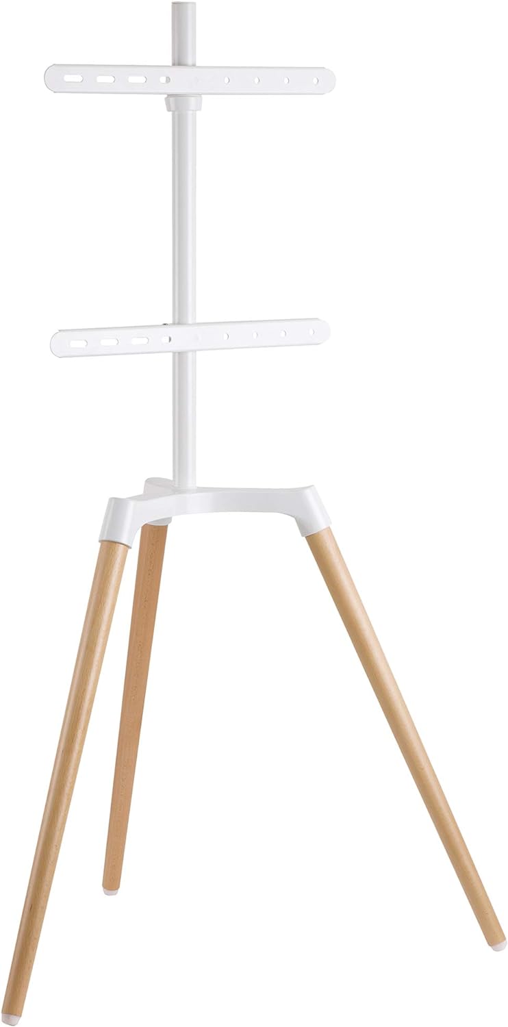 - ✅ HAUPTMERKMALE: TV Standfuss mit weissen Metallgestell und Holzbeinen in edle Buche (hell), Bildschrimhalterung für LCD/LED/OLED/QLED/Curved Displays mit VESA Norm