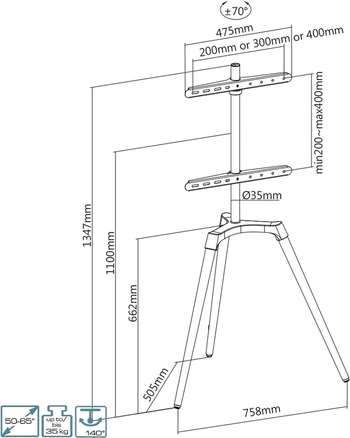 - ✅ UNIVERSAL: Höhenverstellbar TV Stativ, VESA-Norm bis 400x400 & schwenkbare Stange bis 140°, ideal als TV oder Monitor Halterung