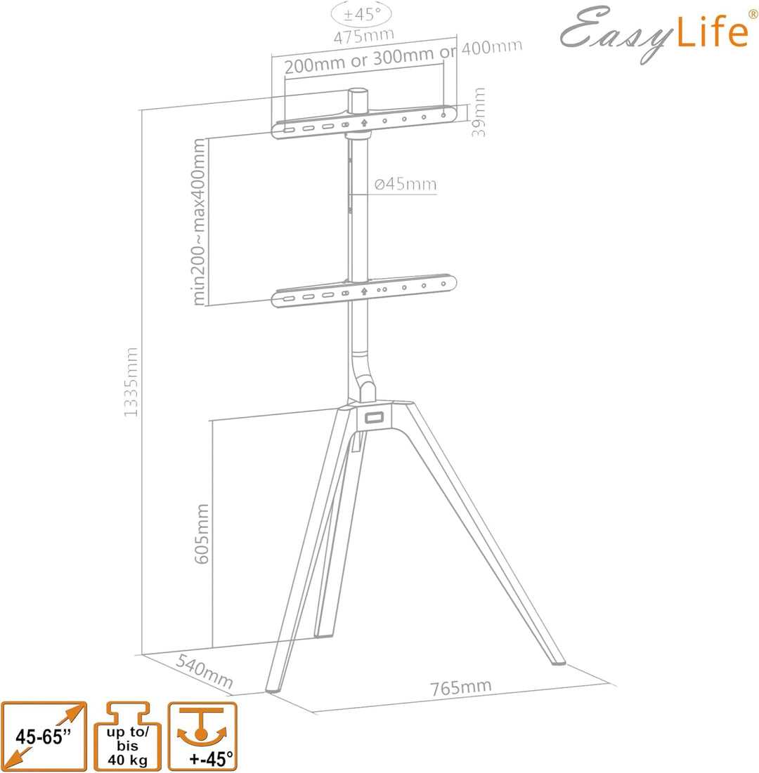 - ✅ UNIVERSAL: Höhenverstellbares TV Stativ mit VESA-Norm von 200x200 bis 400x400 & schwenkbare Stange von +45° bis -45° Grad, ideal als TV, Display oder Monitor Halterung für zu Hause, Büro, Studio, Seminarräume, Praxis und sonstige Räume für