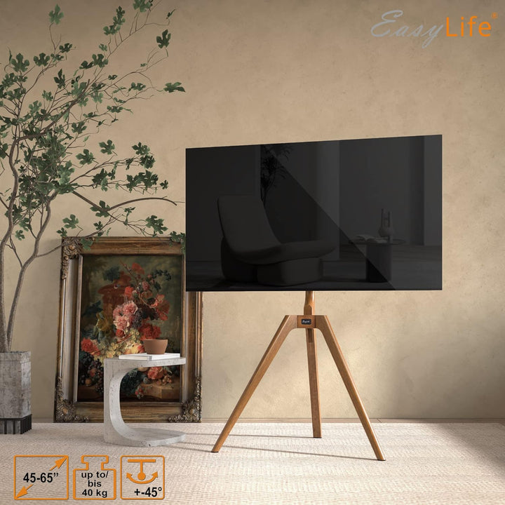 - ✅ LIEFERUMFANG: 1x EasyLife Studio TV Stativ aus Massivholz in Schwarz / Nussbaum dunkel, Wandbefestigung für Sturzsicherung, 1x Befestigungsmaterial, 1x Montageanleitung