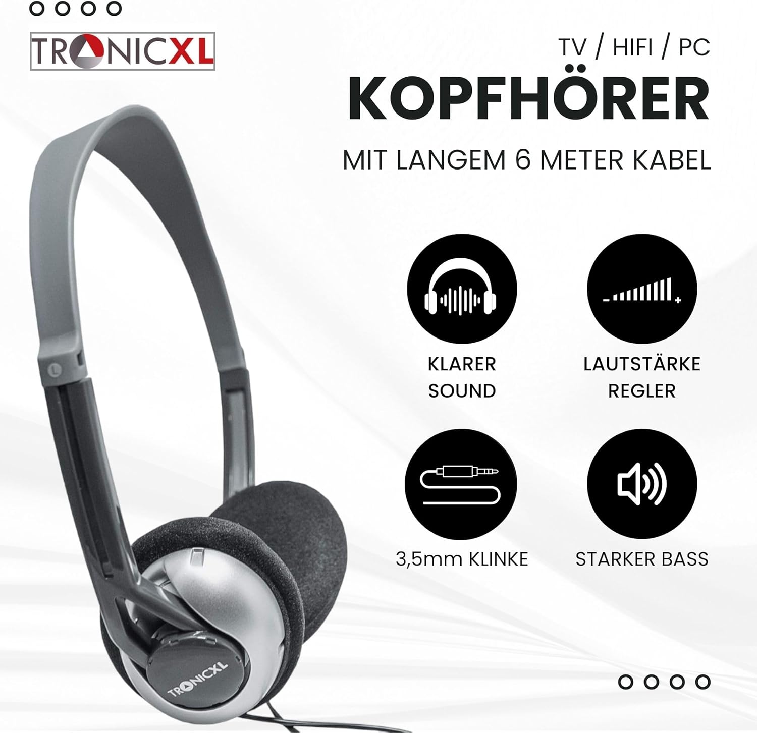 - ✅ Weichgepolsterte Ohrpads für bequemes Tragen ✅ 6 Meter Kabel und Lautstärkeregler.