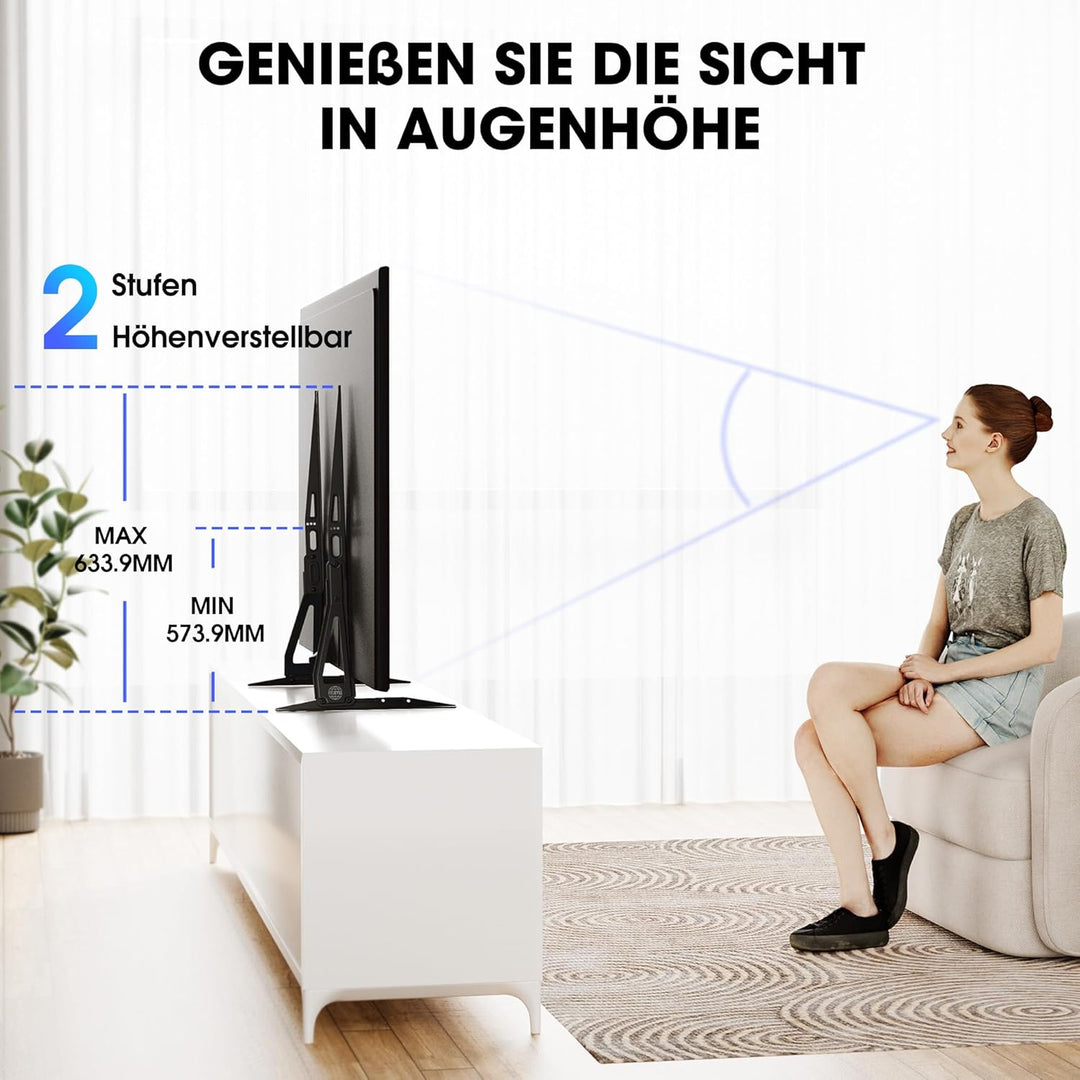 - 【Neigbar&Höhenverstellbar】±6° in vertikale Richtung neigbar.Der TV Fuss verfügt über 2 Stufen der Höhenverstellung; jede Höhe kann um 60 mm für die optimale Betrachtungsposition eingestellt werden.