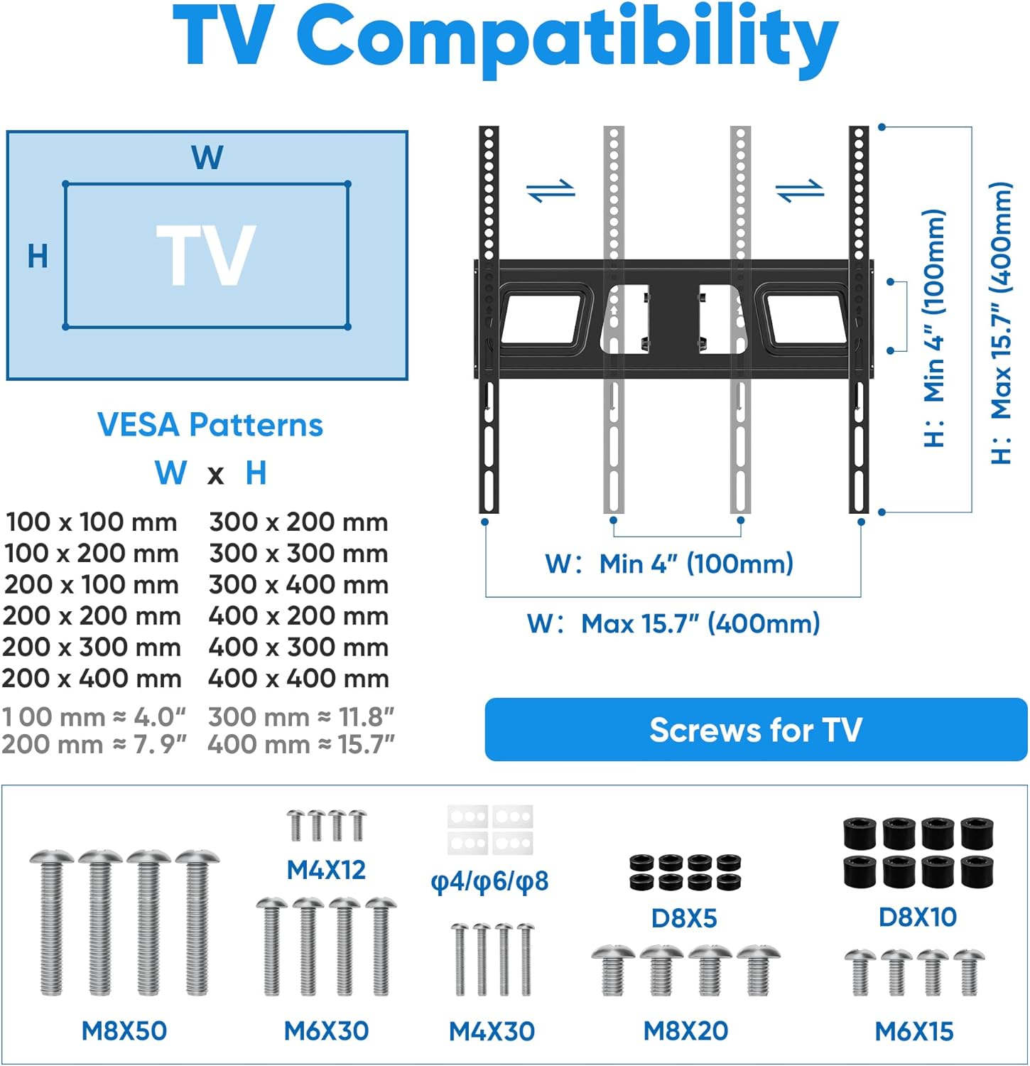 - 【Neigbar und höhenverstellbar】 Der fernseher ständer bietet eine Neigefunktion, mit der Sie Ihren Fernseher von -8° bis +5° für die perfekte Perspektive neigen können. Einfach zu verstellen, kann auch im Liegen den besten Betrachtungseffekt