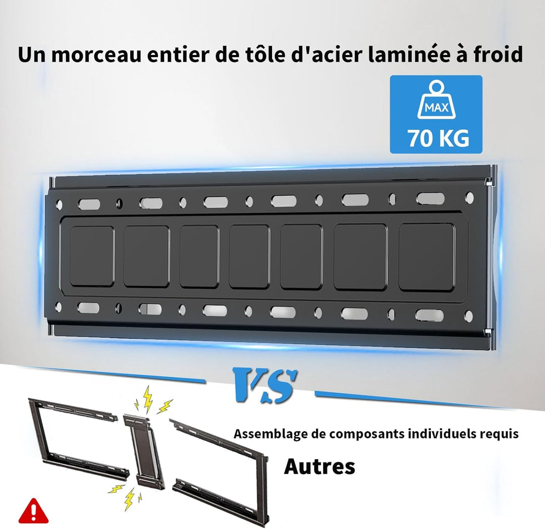 - 【Robuster und langlebiger Rahmen】Diese TV-Wandhalterung ist aus starkem und widerstandsfähigem kaltgewalztem Stahl, robustes Paneldesign, universelles TV-Wandzubehör. Einfach zu installieren, genug Kraft und Stabilität, der gebogene Fernseher kann