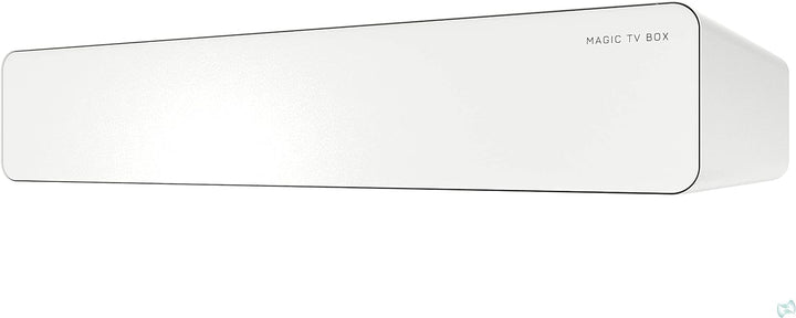 PRODUKTBESCHREIBUNGEN Die Magic TV-Box ist eine innovative Deckenhalterung für TV-Geräte bis zu 43 Zoll. Sie besteht aus einer metallenen Box, die an die Decke montiert wird und in der sich der Fernseher befindet. Mit dem mitgelieferten Handsender kann der Fernseher automatisch aus der Box herausfahren und sich ausklappen, wodurch er einfach und bequem zugänglich ist. Die Magic TV-Box ist die perfekte Lösung für Haus- und Wohnungsbesitzer, die eine smarte und optisch ansprechende Möglichkeit suchen, ihren Fernseher im Schlafzimmer zu platzieren. Wenn der Fernseher nicht benötigt wird, ist er in der Box versteckt und nimmt keinen Platz weg. Dieses Produkt ist eine Neuentwicklung. Es ist die einzige TV-Box am Markt die so konstruiert ist und diese Funktionen bietet.