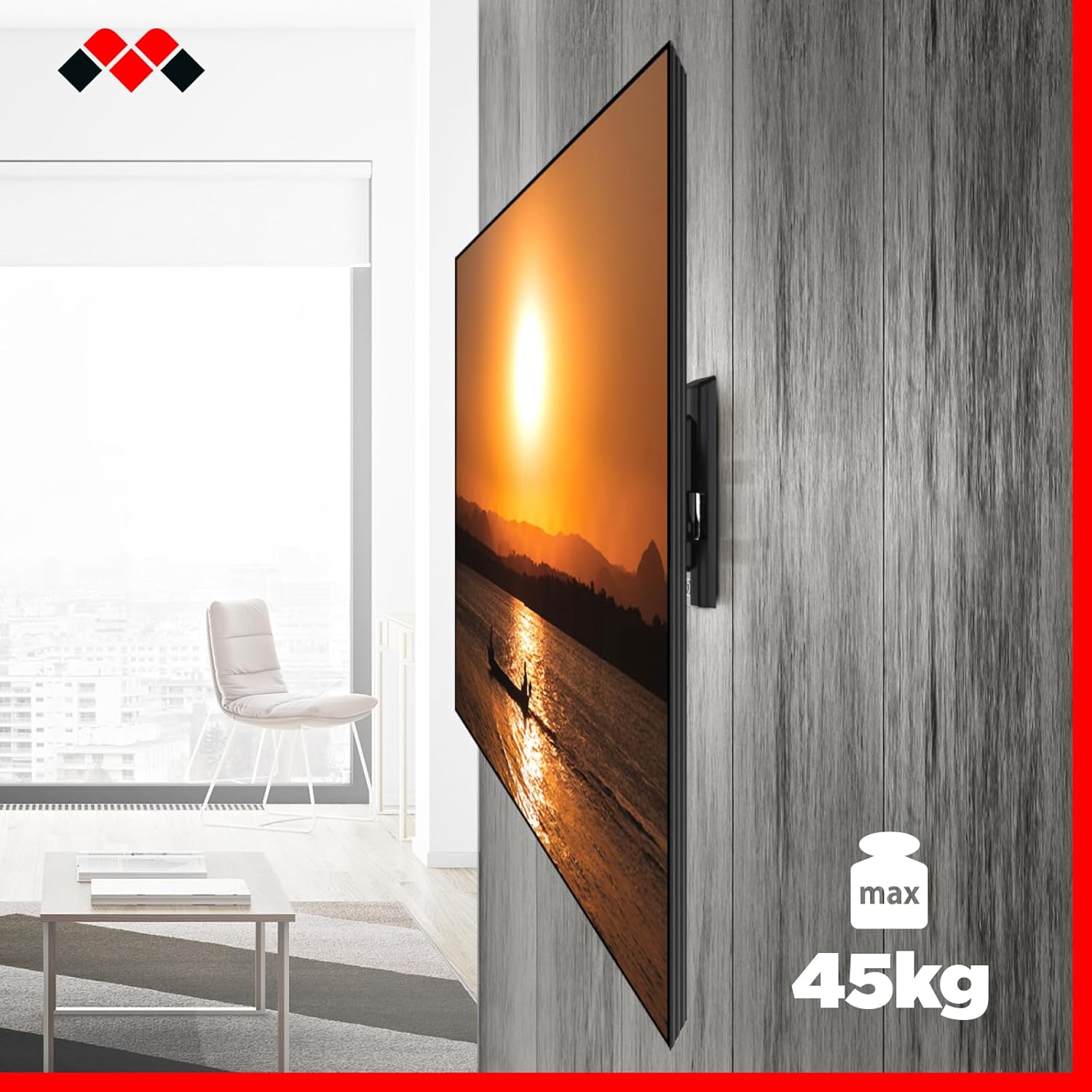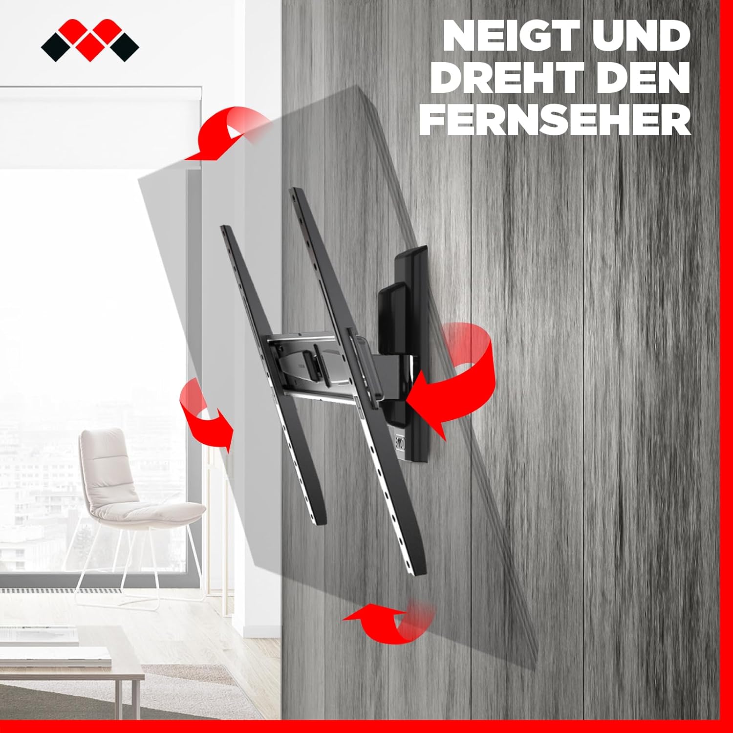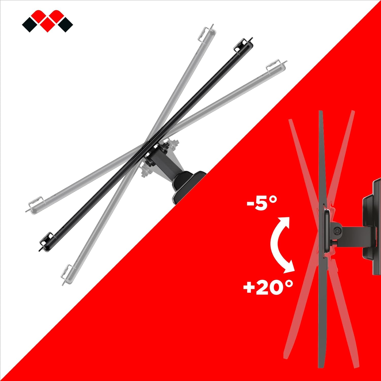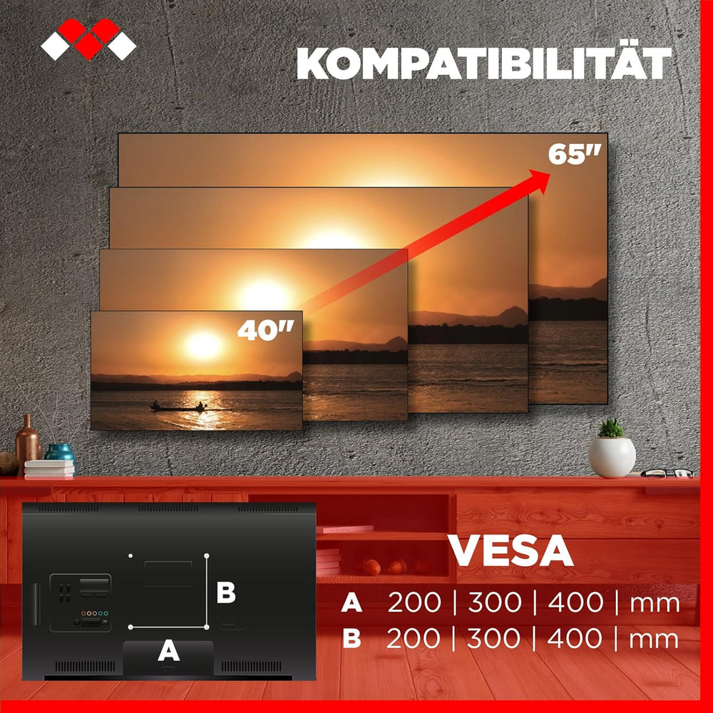 - VON 40" BIS 65": Wandhalterung für Flachbildfernseher von 40" bis 65" mit einer vertikalen Neigung von -5°/+10° und einer horizontalen Drehung von ±20°; die maximale Tragfähigkeit dieser TV-Halterung beträgt 45 kg