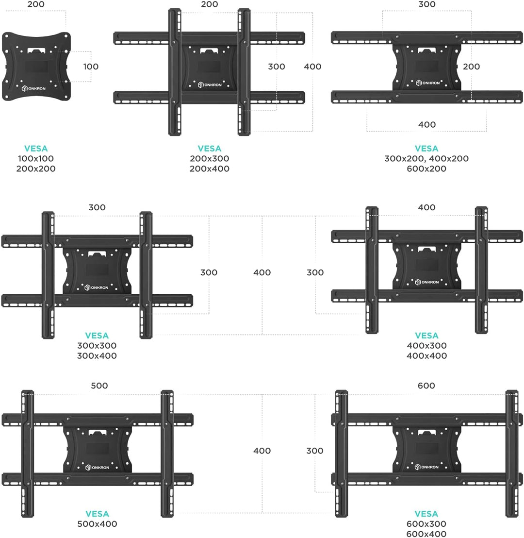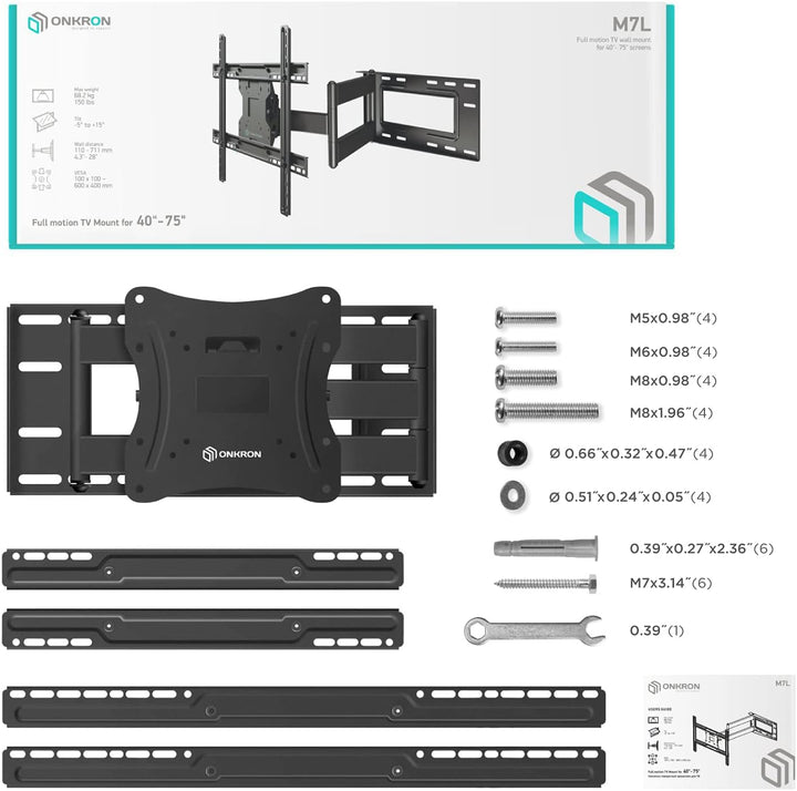 - UNIVERSAL TV WANDHALTERUNG | ONKRON M7L ist eine neigbare und schwenkbare TV Wandhalterung für 40 - 75 Zoll Fernseher and Bildschirme mit einem Gewicht von bis zu 68 kg | TV Halterung Wand ist kompatibel mit Wandhalterung VESA 100x100 - 600x400 | Diese