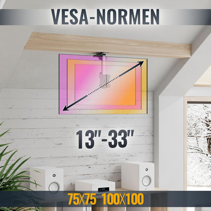 - 𝗨𝗡𝗧𝗘𝗥𝗦𝗧Ü𝗧𝗭𝗧𝗘 𝗩𝗘𝗦𝗔-𝗡𝗢𝗥𝗠𝗘𝗡: Hohe Belastbarkeit des Fernseherhalter max 20Kg - Deckenbefestigung aus Alu / Aluminium der Deckenhalterung 75x75 100x100