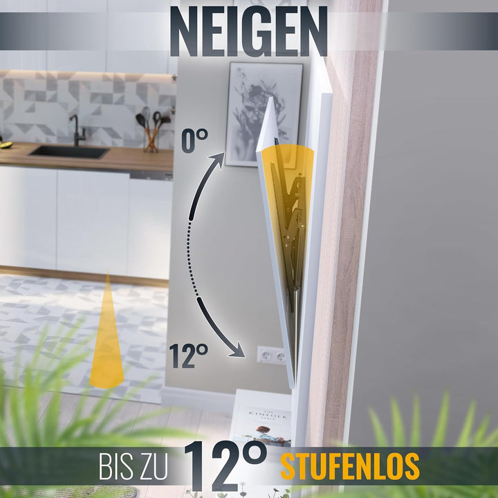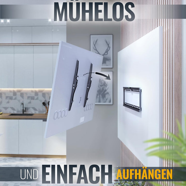 - 𝗙𝗨𝗡𝗞𝗧𝗜𝗢𝗡𝗘𝗡: Der Neigebereich der Fernseher Aufhängung beträgt +12 Grad. Diese Fernsehhalterung ist mit einem Wandabstand von 40mm ultra slim und nah an der Wand