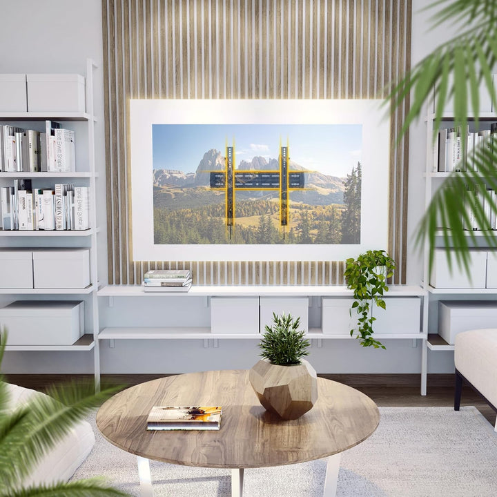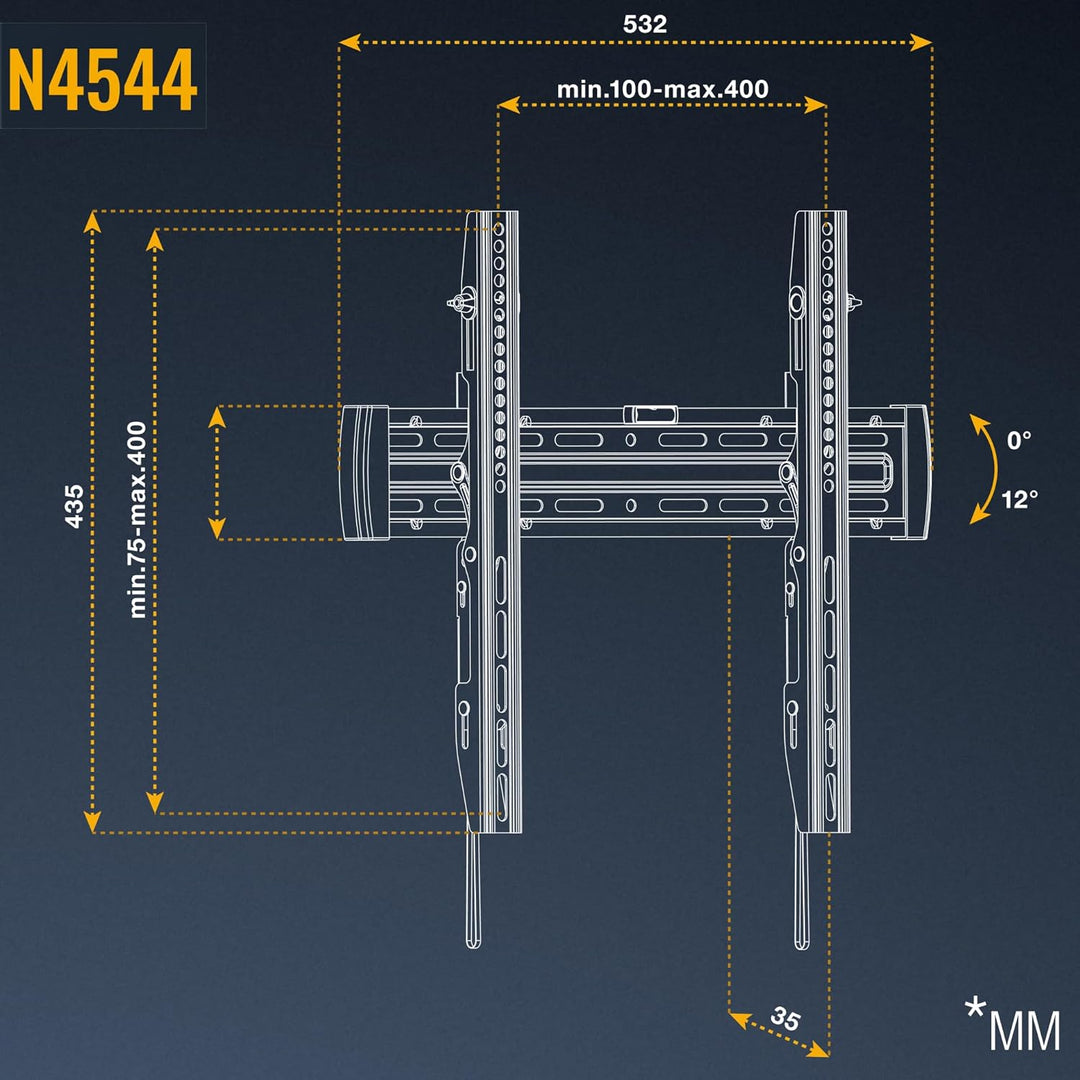 - 𝗙𝗨𝗡𝗞𝗧𝗜𝗢𝗡𝗘𝗡: Der Neigebereich der Fernseher Aufhängung ist +12/-0 Grad. Diese Fernseherhalterung ist mit einem Wandabstand von 35mm ultraslim und nah an der Wand. Dieser Wandhalter ist NICHT schwenkbar