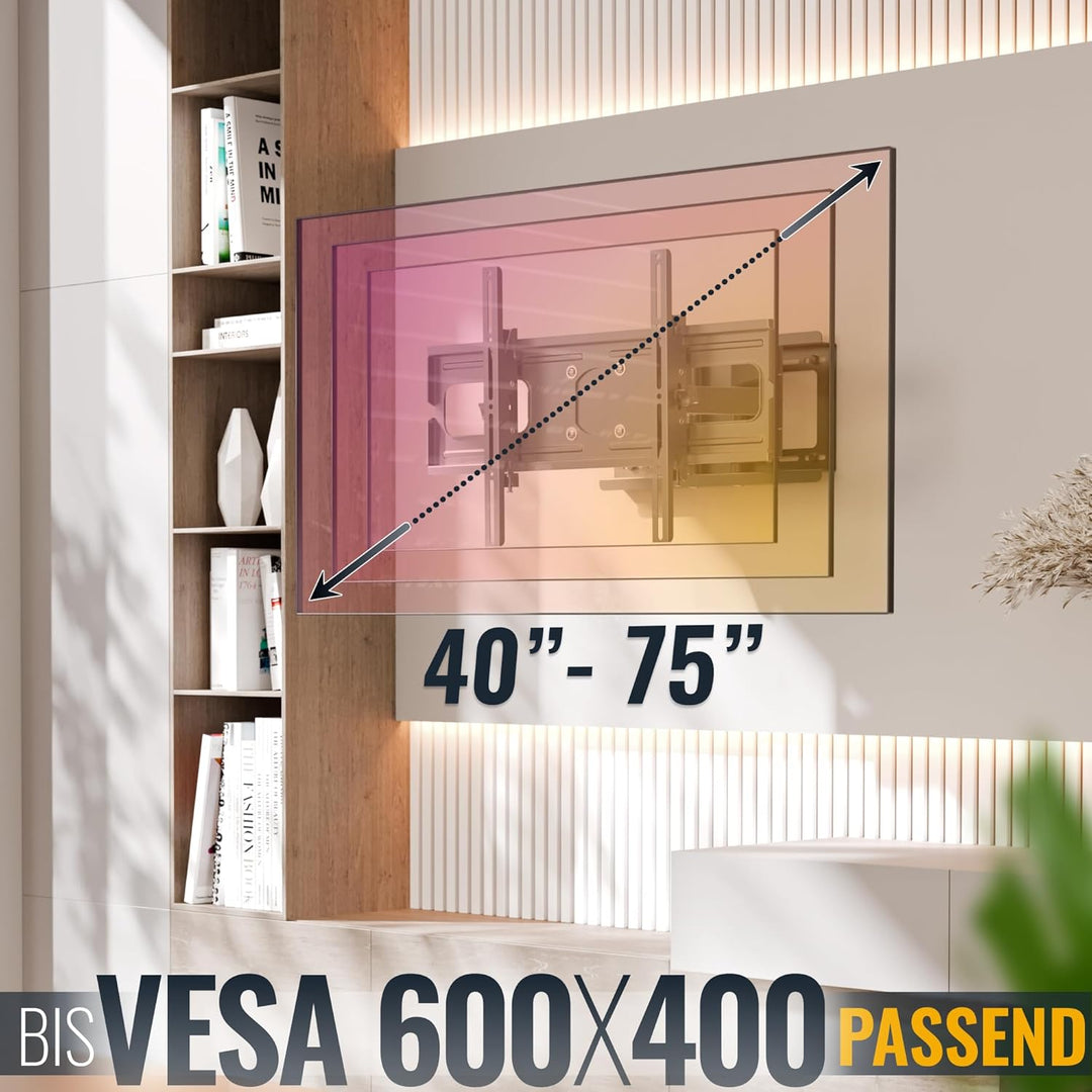 - 𝗙𝗨𝗡𝗞𝗧𝗜𝗢𝗡𝗘𝗡: Diese Fernseherhalterung ist bis 120 Grad schwenkbar wenn Bildschirmbreite max 80cm. Der Neigebereich liegt bei +/- 15 Grad. Wandabstand zwischen 115mm - 545mm. Zur optimalen Einstellung nach der Montage ist die