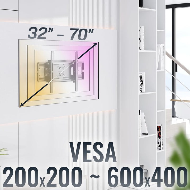 - 𝗨𝗡𝗧𝗘𝗥𝗦𝗧Ü𝗧𝗭𝗧𝗘 𝗩𝗘𝗦𝗔-𝗡𝗢𝗥𝗠𝗘𝗡: TV Wandhalter besitzt eine hohe Belastbarkeit ca. 95kg bis VESA 400x400 und ca. 55kg bis VESA 600x400. - 300x200 300x300 400x200 400x400 500x400 600x400