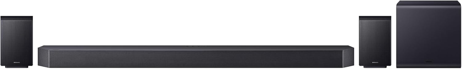 - Samsung Soundbar mit kinoreifem 11.1.4-Kanal-Surround-Sound mit 23 integrierten Lautsprechern und kabellosem Dual-8"-Subwoofer
