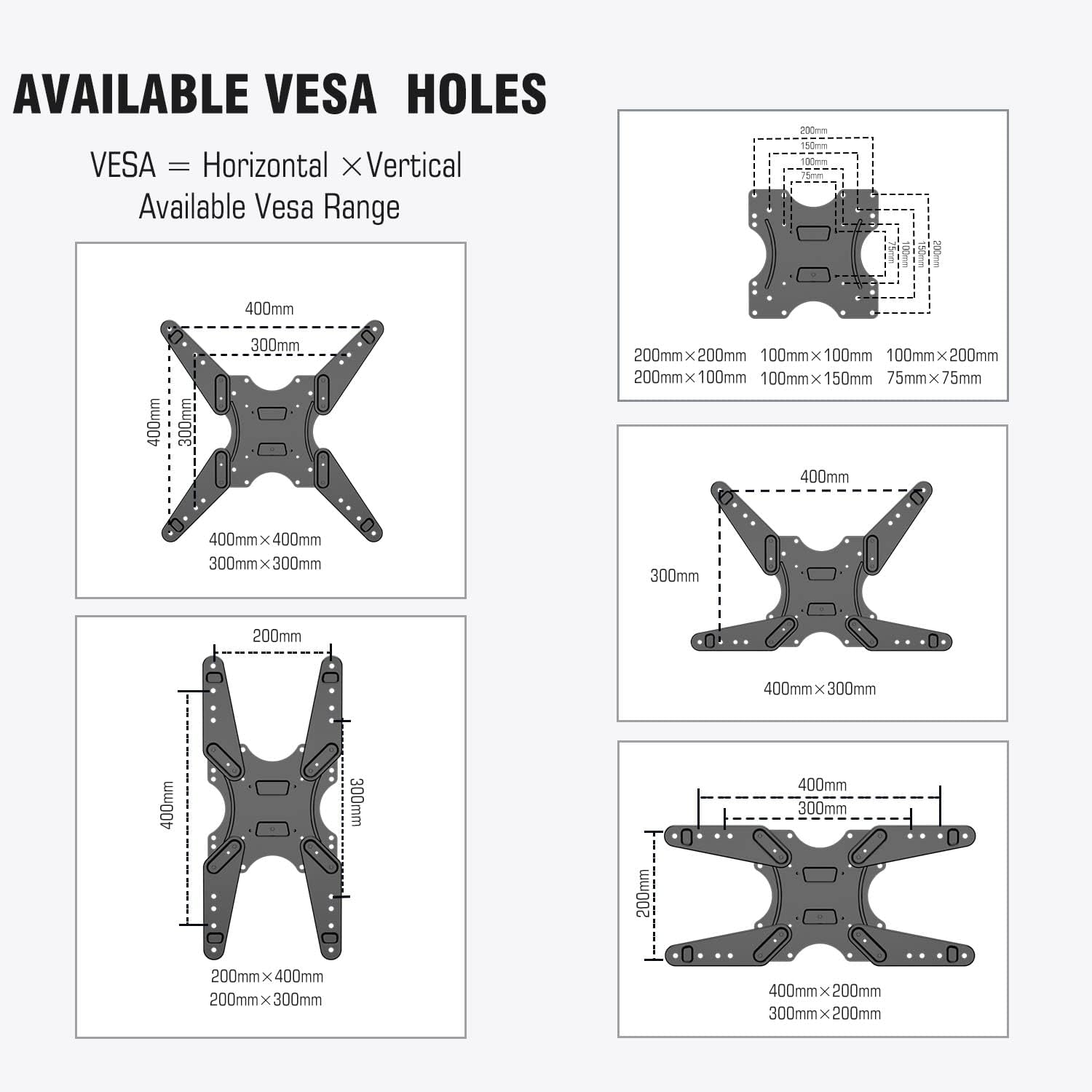 - Weitgehend Kompatibel - Diese TV Wandhalterung ist geeignet für die meisten 26 - 55 Zoll Flach & Curved Fernseher bis zu 40kg. Kompatible VESA: 75x75 / 100x100 / 200x100 / 200x200 / 200x300 / 200x400 / 300x200 / 300x300 / 400x200 / 400x300 / 400x400mm.
