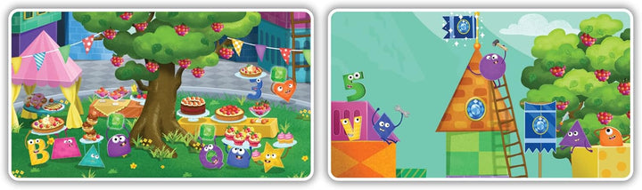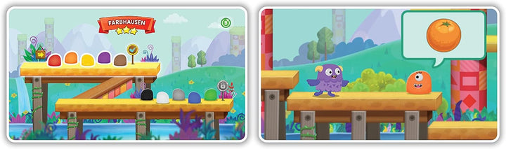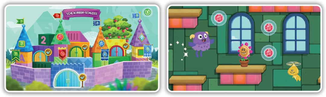 - 5 aufregende Welten entdecken In den verschiedenen Welten Buchstabenland, Zahlingen, Formenstadt und Farbhausen können Belohnungen gesammelt werden, um neue Türen im Schlaubeer-Schloss zu öffnen