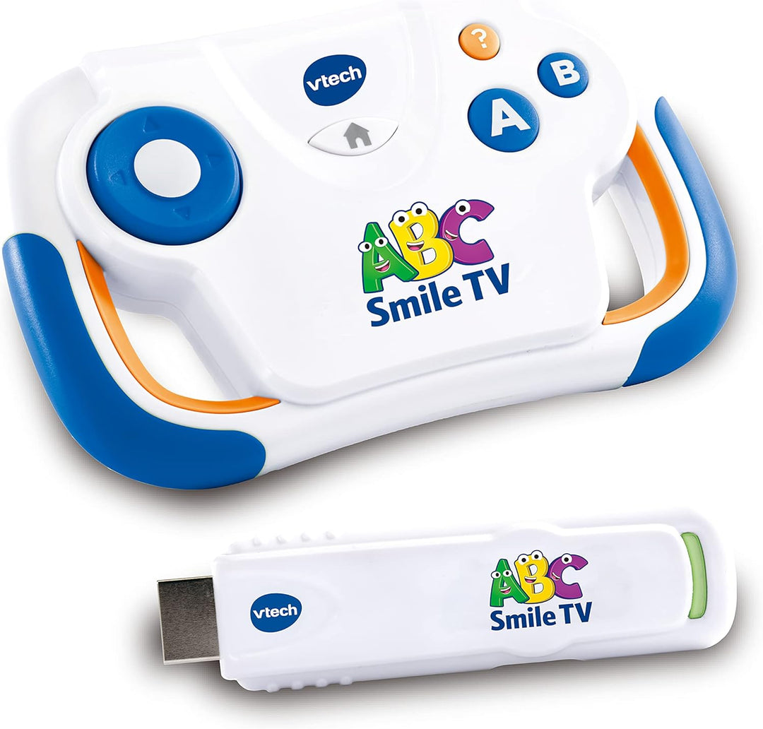 - Lieferumfang 1 x VTech ABC Smile TV / Controller mit HDMI-Stick / Inkl. microUSB-Kabel / Deutsche Version / Kindersicheres Batteriefach und Abschaltautomatik / Alter 3-7 Jahre / Art. Nr 80-613264