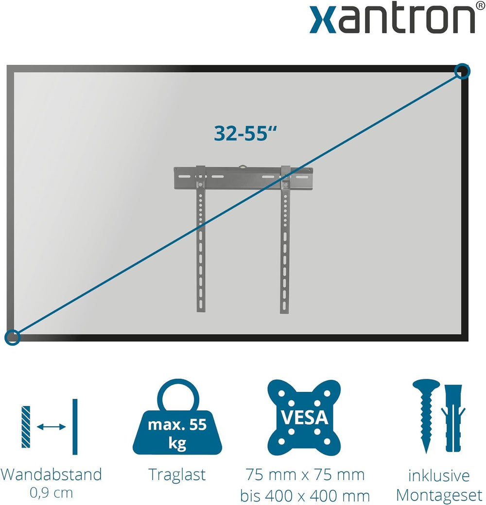 Xantron® PRO-SS400 Feste Wandhalterung Fernseher 32-55 Zoll/VESA 200x200 bis 400x400 / TV Halterung