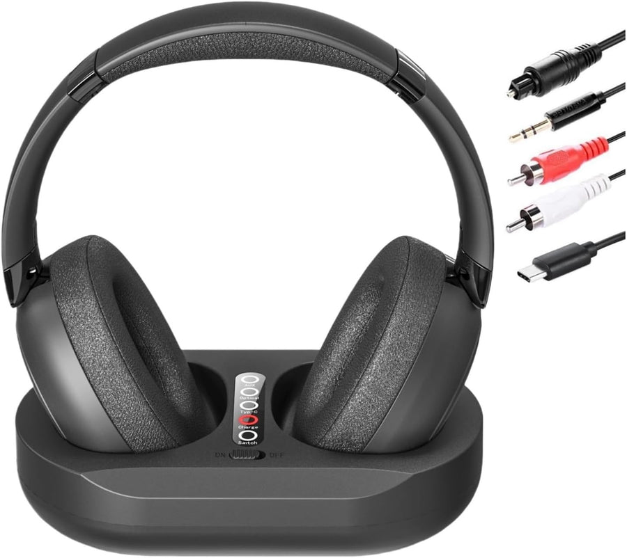 Kabellose TV-Kopfhörer für Senioren mit Sender-Ladestation, 2.4 GHz RF & Bluetooth 5.3 für Fernseher