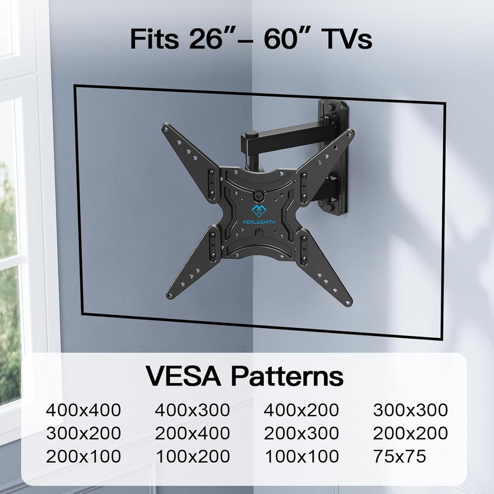 PERLESMITH TV Wandhalterung Schwenkbar Neigbar, Wandhalterung Fernseher für 26-60 Zoll Flach & Curve