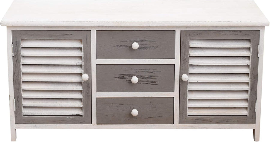 Rebecca Mobili Lowboard für Fernseher, Fernseherschrank 2 Türen 3 Schubladen, Holz, Weiss Grau, Vint